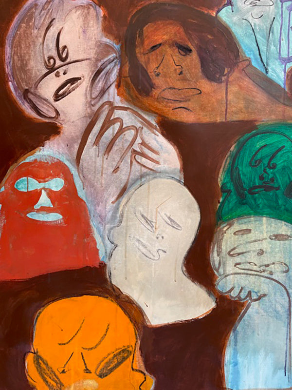 Her paintings reflect on the choreography of the everyday, the scroll, the swipe and the curated pause. Rees considers whether our expressions are genuinely our own or quietly shaped by the desire for approval.