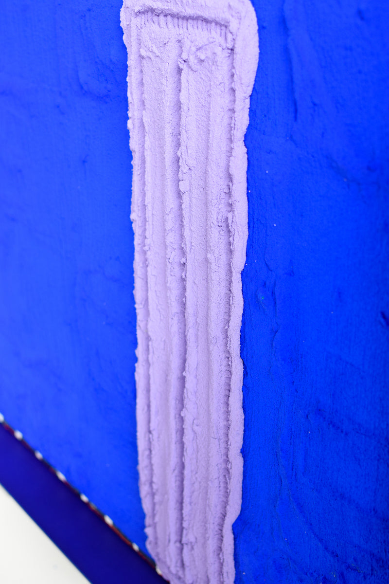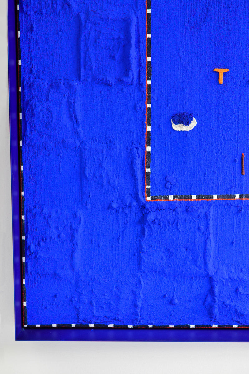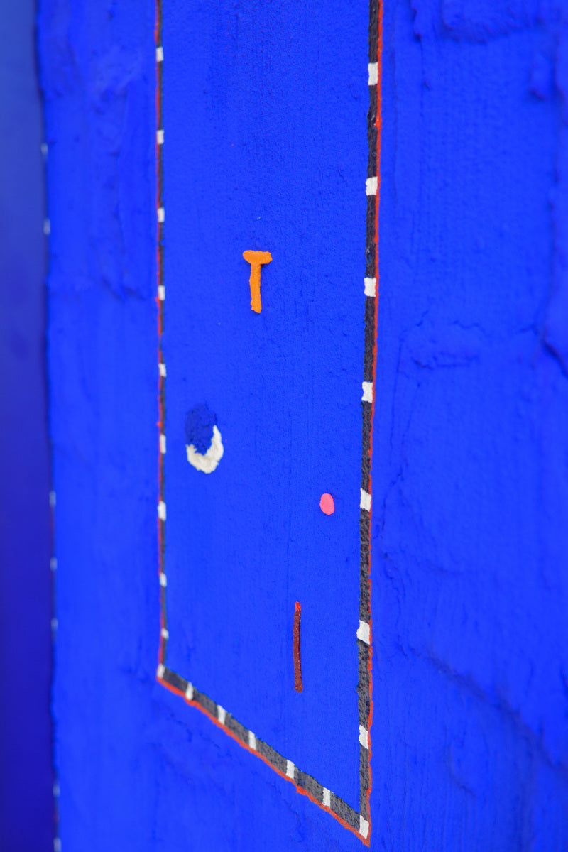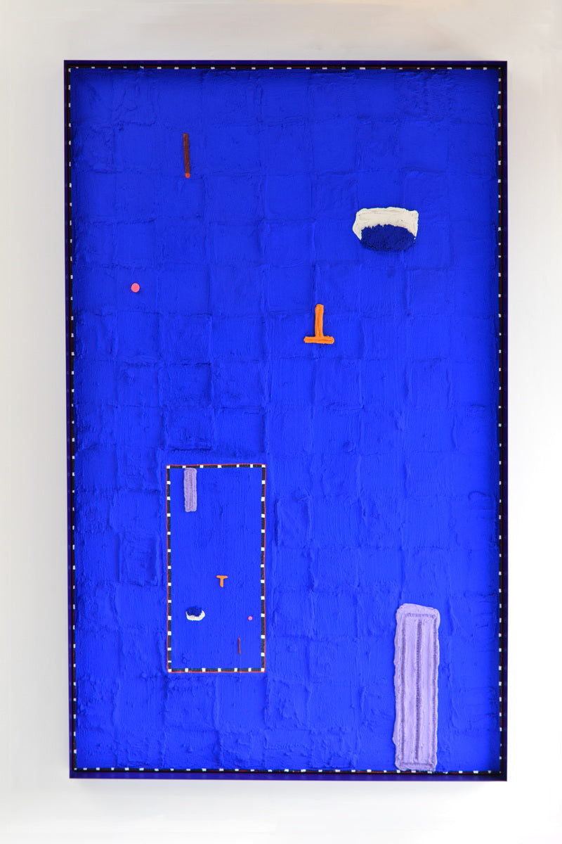 acrylic paint, sand, powder coated steel, plywood, canvas