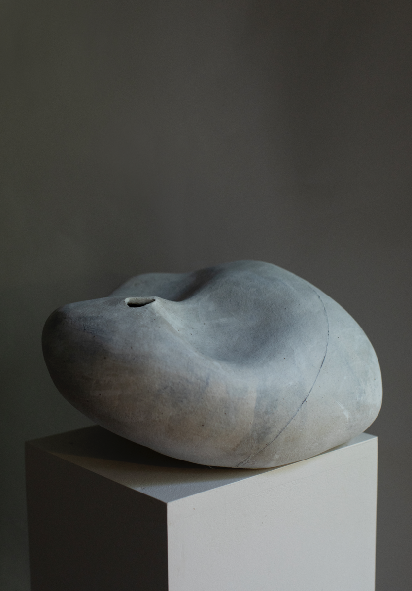 Handbuilt Sculpture, Highfired Stoneware, White Dry Glaze, Oxides