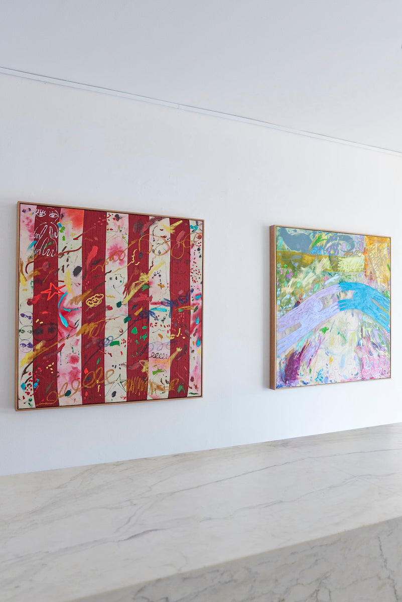 Oil, Oil Stick and Acrylic on panelled silk and dyed cotton, framed in a Tasmanian Oak