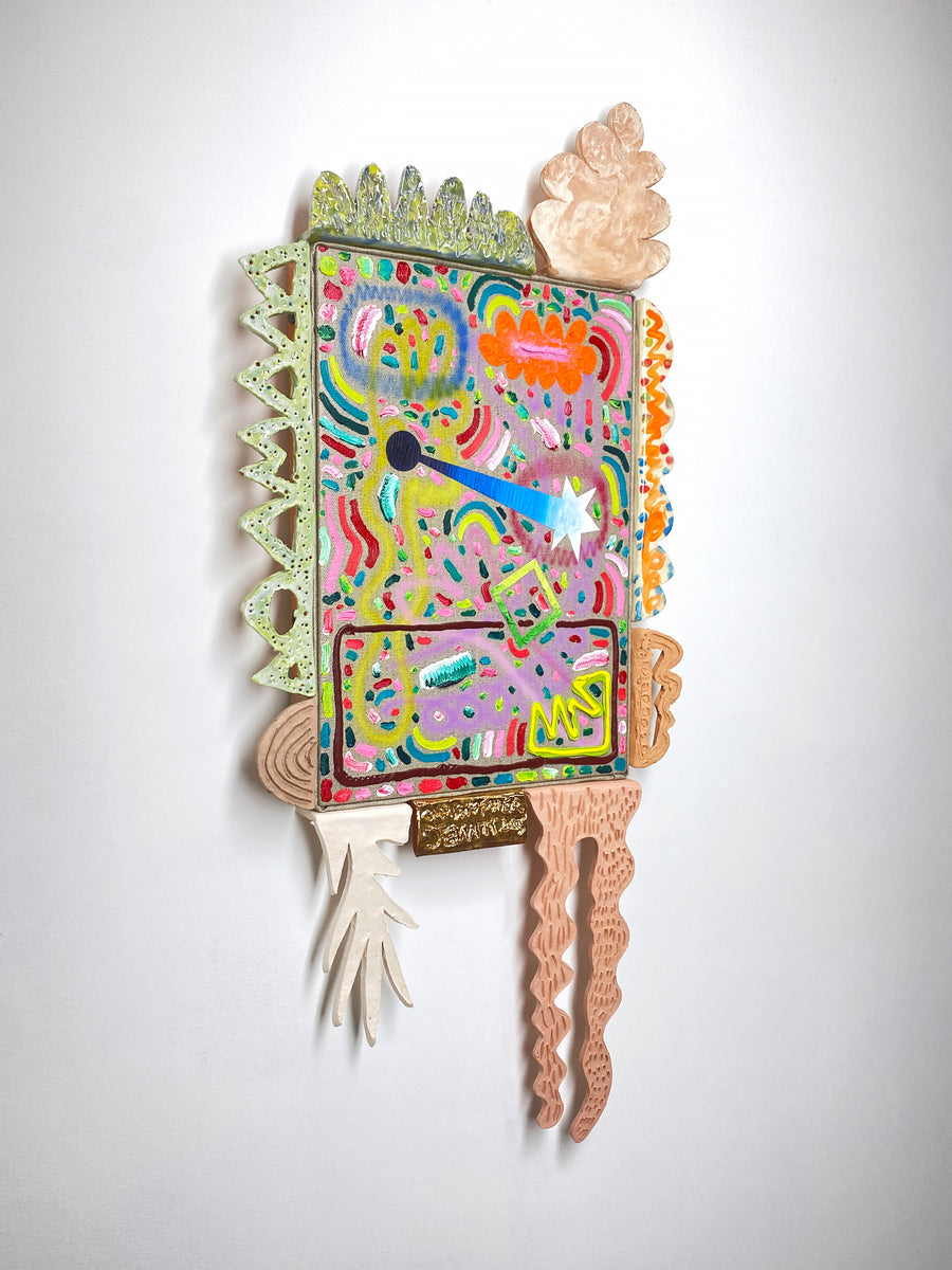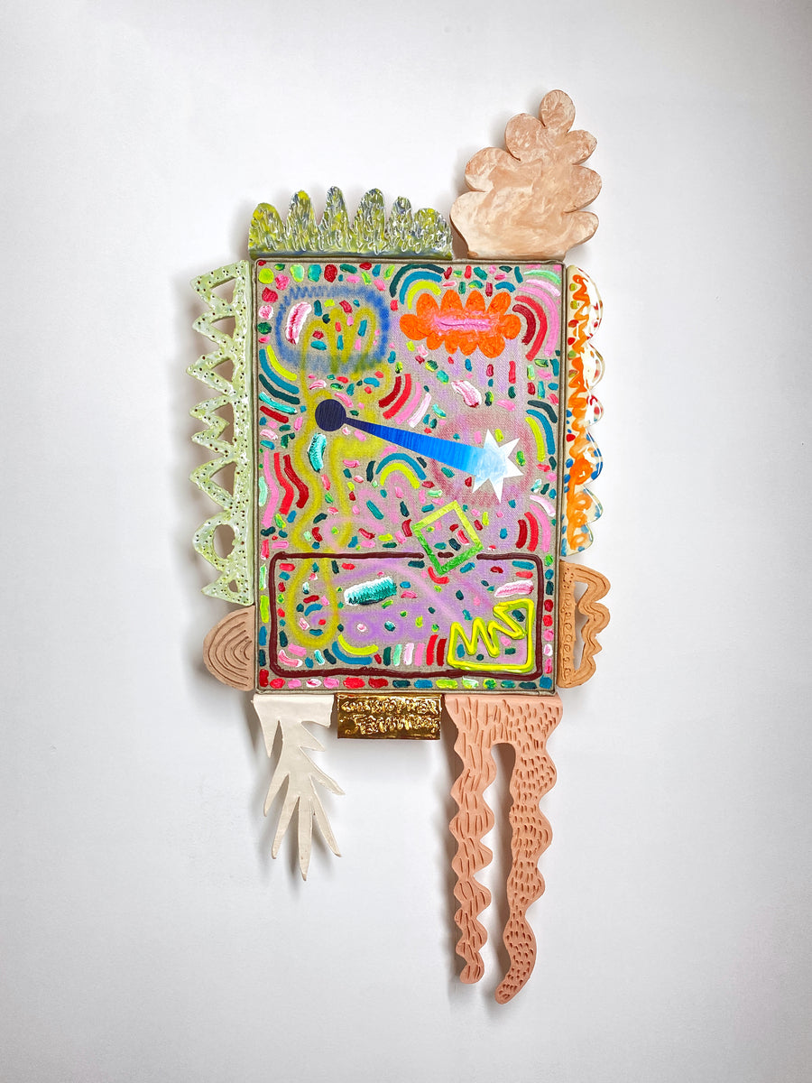 Oil, acrylic, enamel and earthenware, terracotta, lustre