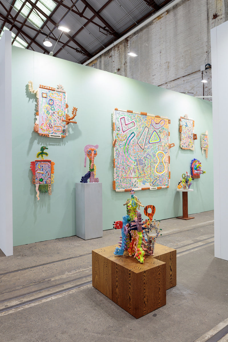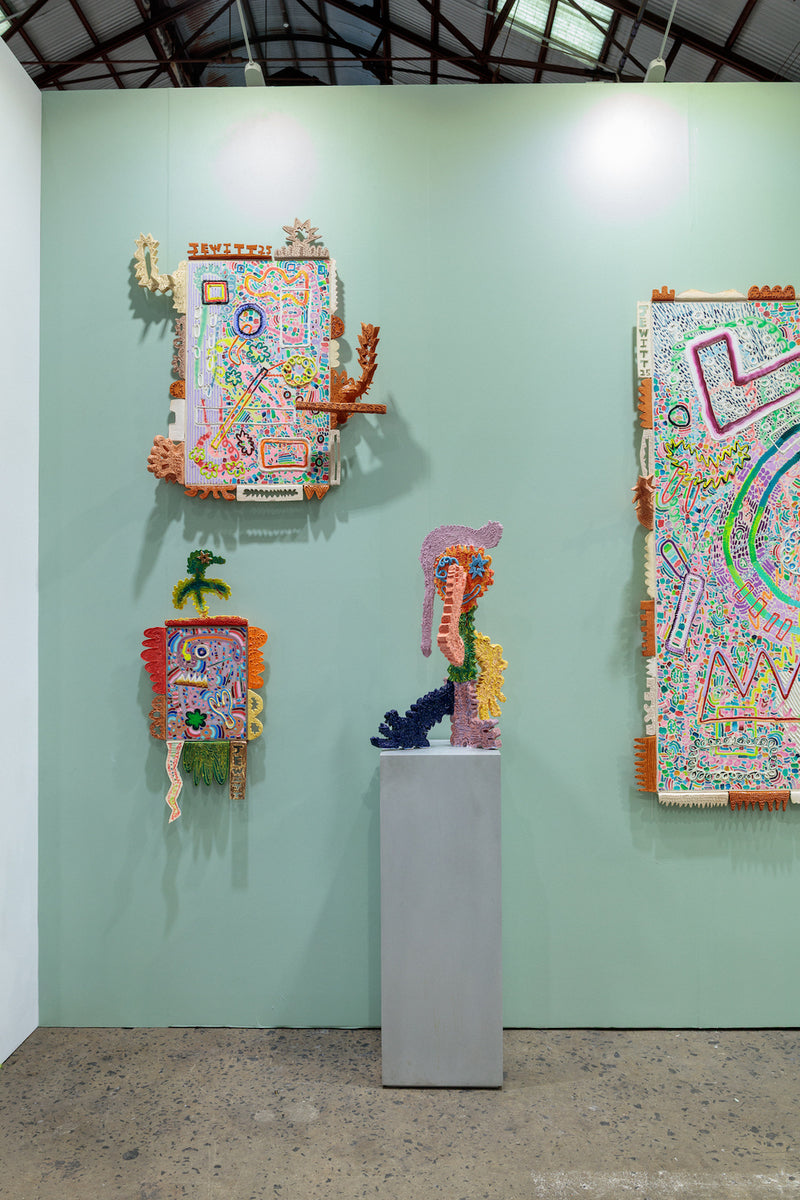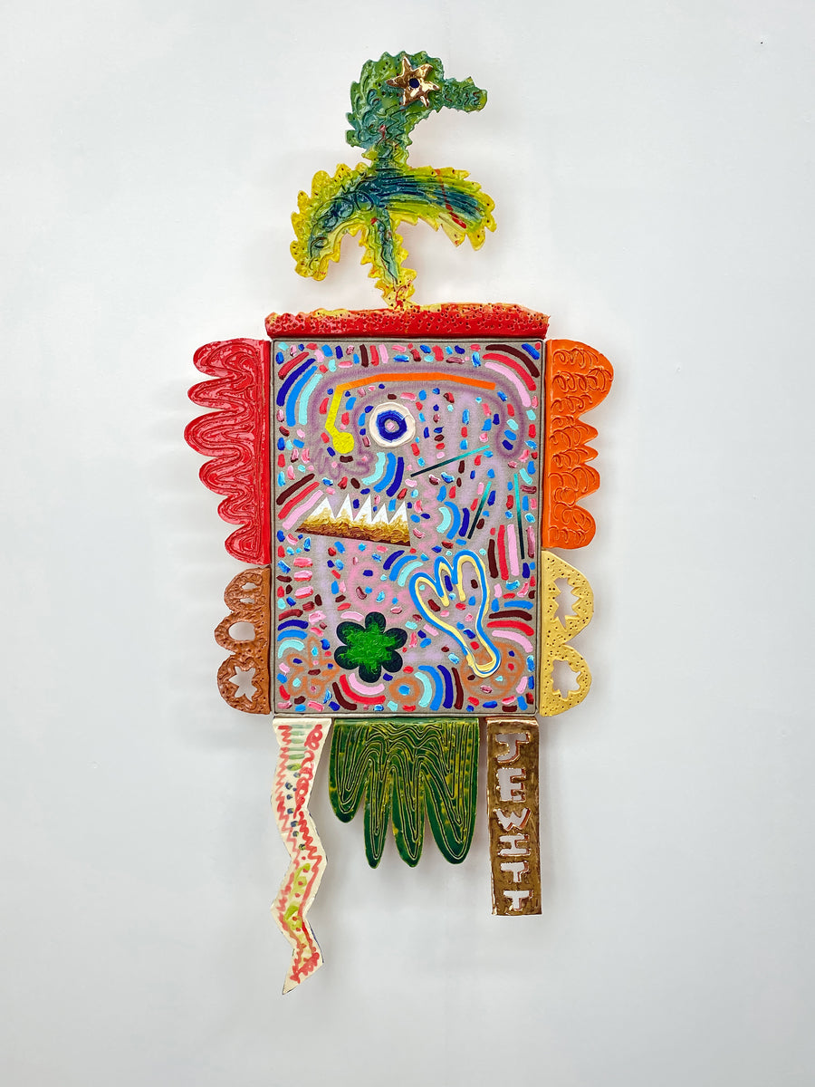 Oil, acrylic, enamel and earthenware, terracotta, lustre