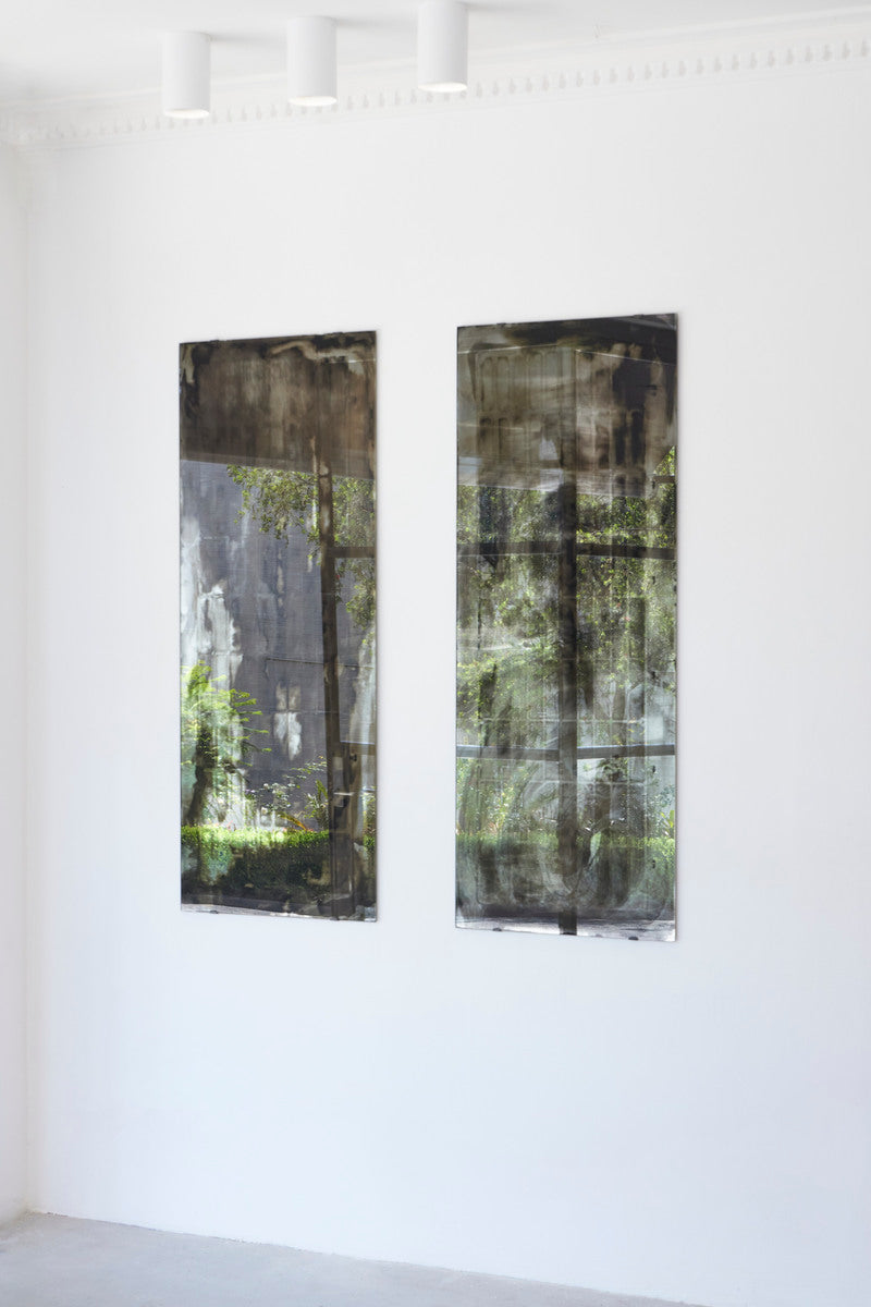 Hand poured silver nitrate, glass, blackened brass fixings.