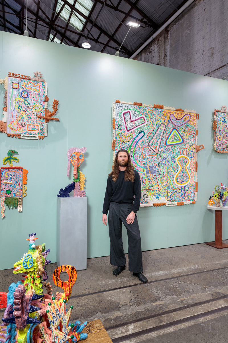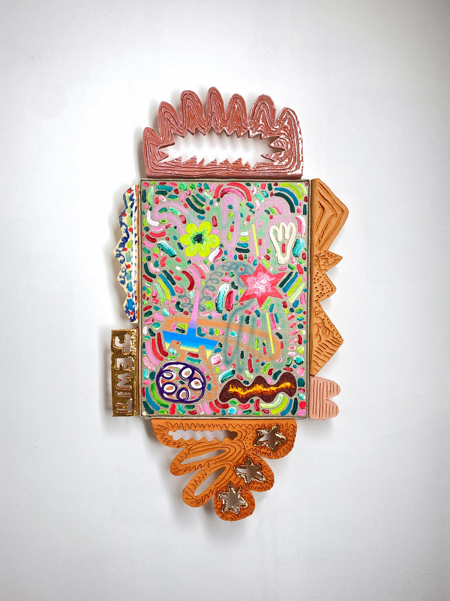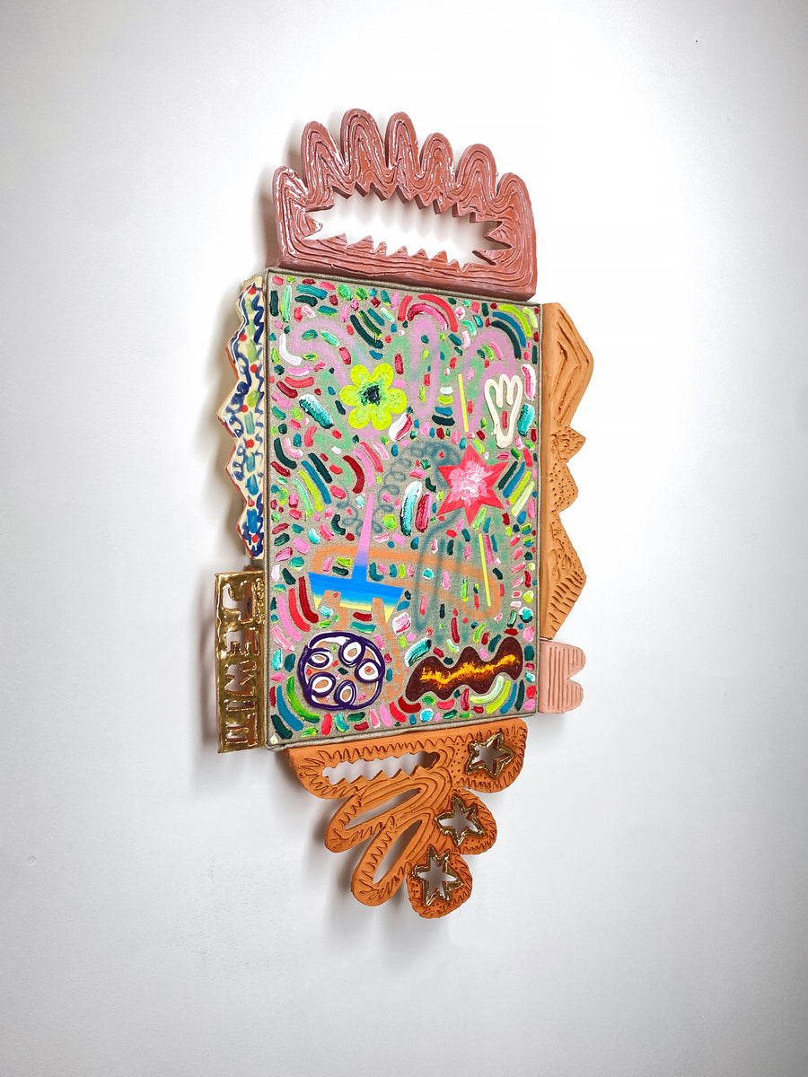 Oil, acrylic, enamel and earthenware, terracotta, lustre